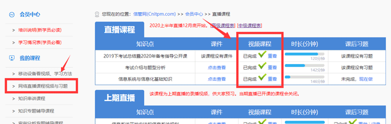 JRS直播信息系统项目管理师录播课程观看说明,系统集成项目管理工程师录播视频观看说明,系统规划与管理师录播视频观看说明,信息安全工程师录播视频观看说明。