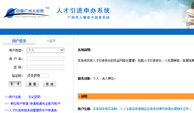 http://gzrsj.hrssgz.gov.cn/vsgzhr/Login_rcyjsb.aspx)注册并申请开通“人才引进申办系统”法人单位权限。