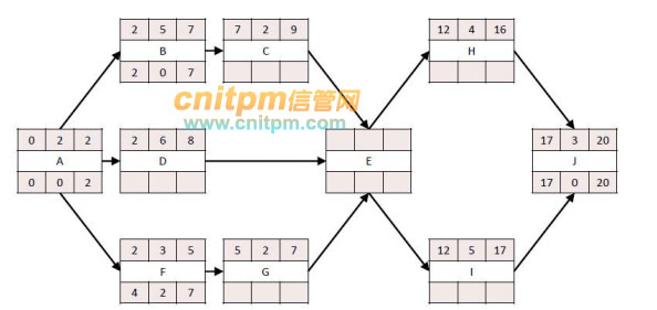 关键路径为abceij,工期为17天