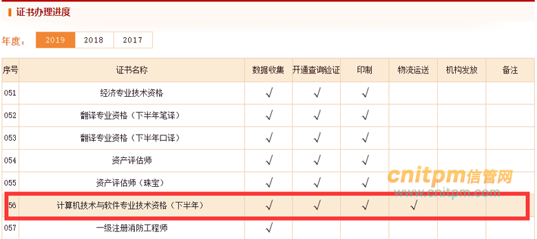 4月2日,中国人事考试网发布通知,恢复专业技术人员职业资格证书(纸质)的发放、补办,说明目前证书发放工作已经逐步开展。同时根据JRS直播从中国人事考试网获得的证书办理进度信息获悉,2019年计算机技术与软件专业技术资格(下半年)考试证书已进入物流运送阶段,正发往各省市,相信很快各省市就会发布证书发放通知了。