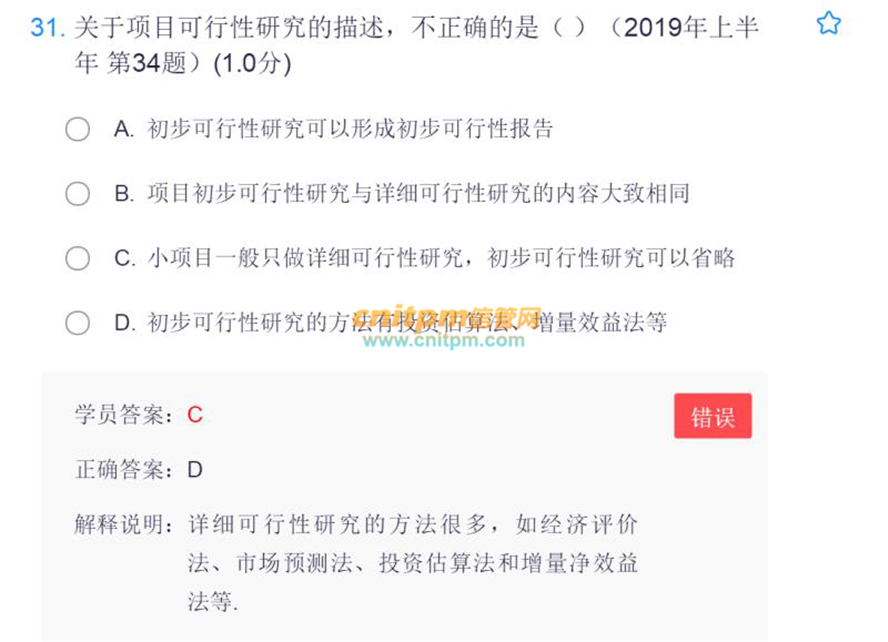 关于项目可行性研究的描述,不正确的是()