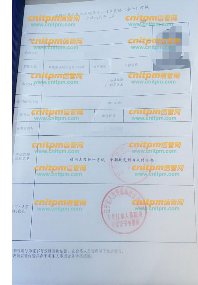 问:软考中级,如系统集成项目管理工程师证书,也会有合格人员登记表吗?