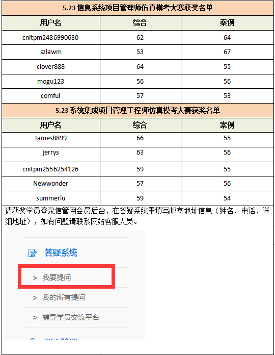 5.23信息系统项目管理师仿真模考大赛获奖名单