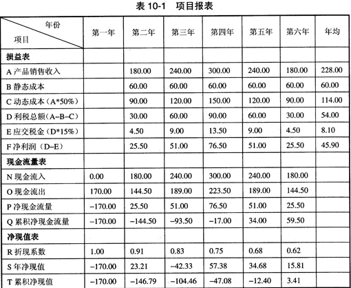 计算其静态投资回收期、投资利润率和动态投资回收期,需要先做出该项目的损益表、现金流量表和净现值表。