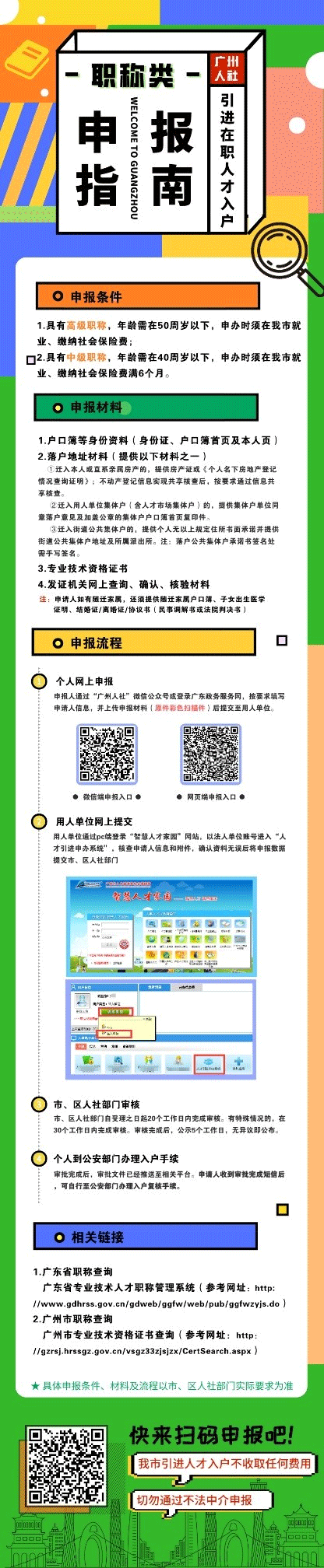 为优化广州市营商环境,畅通引才聚才渠道,持续深化引进人才入户改革。近日,广州市人社局发布通知,自2020年6月10日起,在全市范围内实施引进在职人才入户“移动端申报+全流程网办”,打造便民利民新举措。