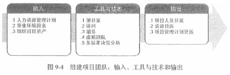 概念:确认人力资源的可用情况,并为开展项目活动而组建团队的过程