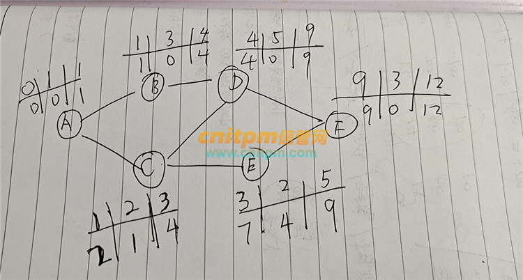 上面数字是最早开始时间和最早完成时间,是从头开始正推。