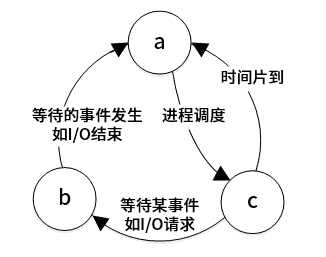 操作系统中进程的三态模型如下图所示,图中的a、b和c处应分别填写( )。A.阻塞、就绪、运行B.运行、阻塞、就绪C.就绪、阻塞、运行D.就绪、运行、阻塞