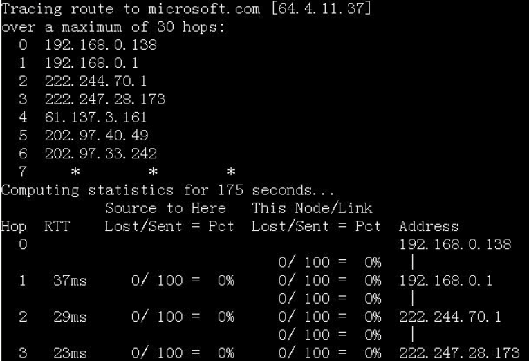 在Windows命令行下执行( )命令出现下图的效果。A.pathping –n microsoft B.tracert –d microsoft C.nslookup microsoft D.arp –a