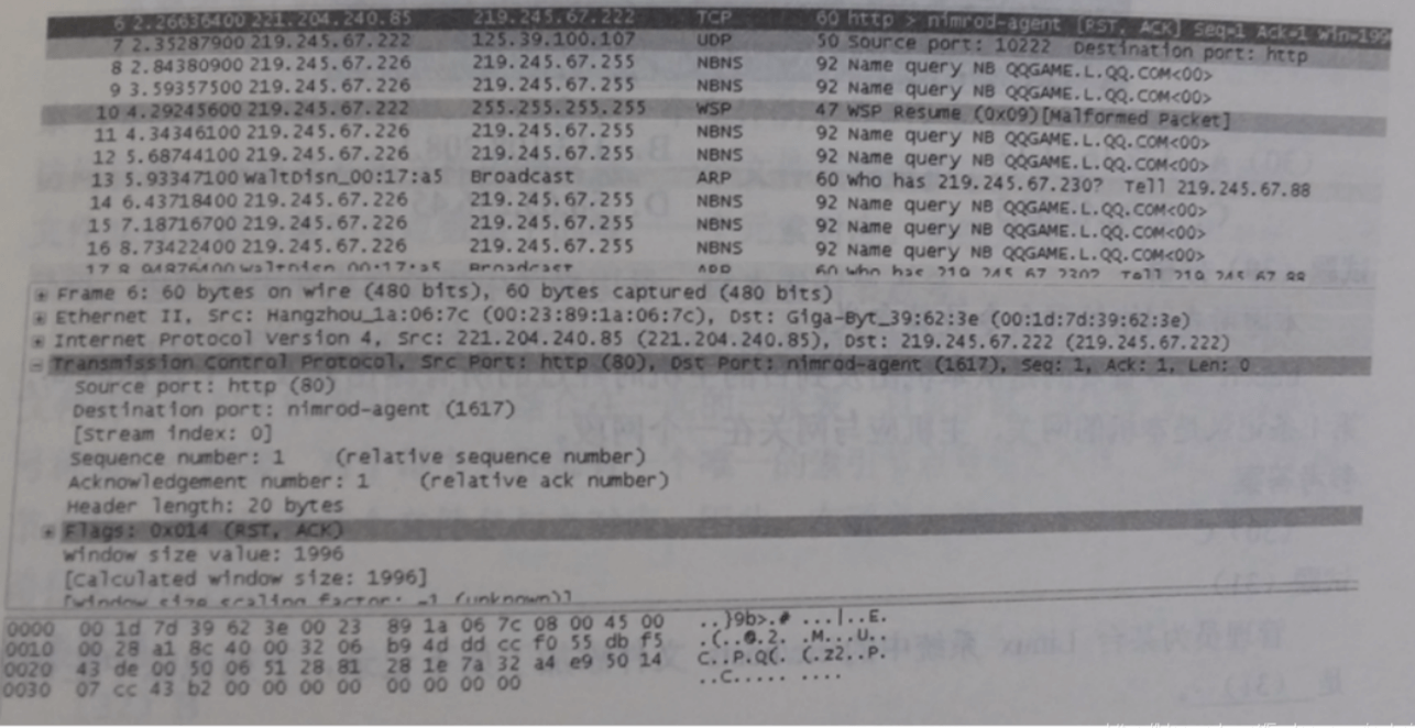 采用抓包工具截获的结果如下图所示。图中第1行记录显示的是(1),报文由(2)发出。(1)A.TCP错误连接响应报文B.TCP连接建立请求报文C.TCP连接建立响应报文D.Urgent紧急报文(2)A.Web客户端B.Web服务器C.DNS服务器D.DNS客户端