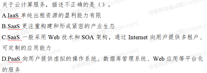 关于云计算服务,描述不正确的是()。A.IaaS单纯出租资源的盈利能力有限B.SaaS更注重构建和形 - JRS直播