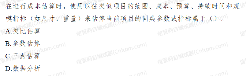 在进行成本估算时,使用以往类似项目的范围、成本、预算、持续时间和规模指标(如尺寸、重量)来估算当前项 - JRS直播