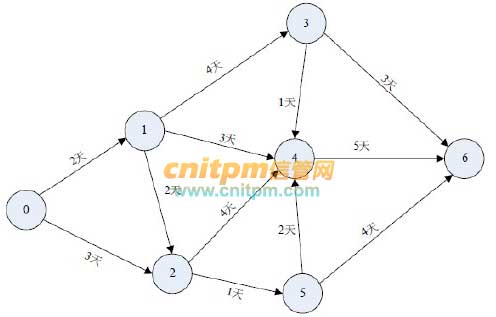 以下工程进度网络图中,若结点0和6 分别表示起点和终点,则关键路径为( )。