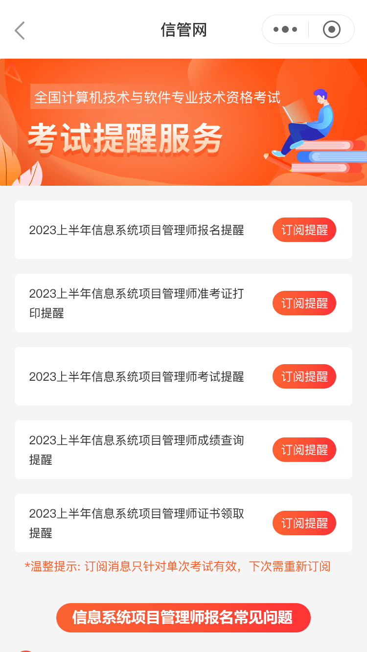 进入“待订阅消息”页面(有报名提醒、准考证打印提醒、考试提醒、查分提醒、证书领取提醒等可订阅),点击 “订阅提醒”